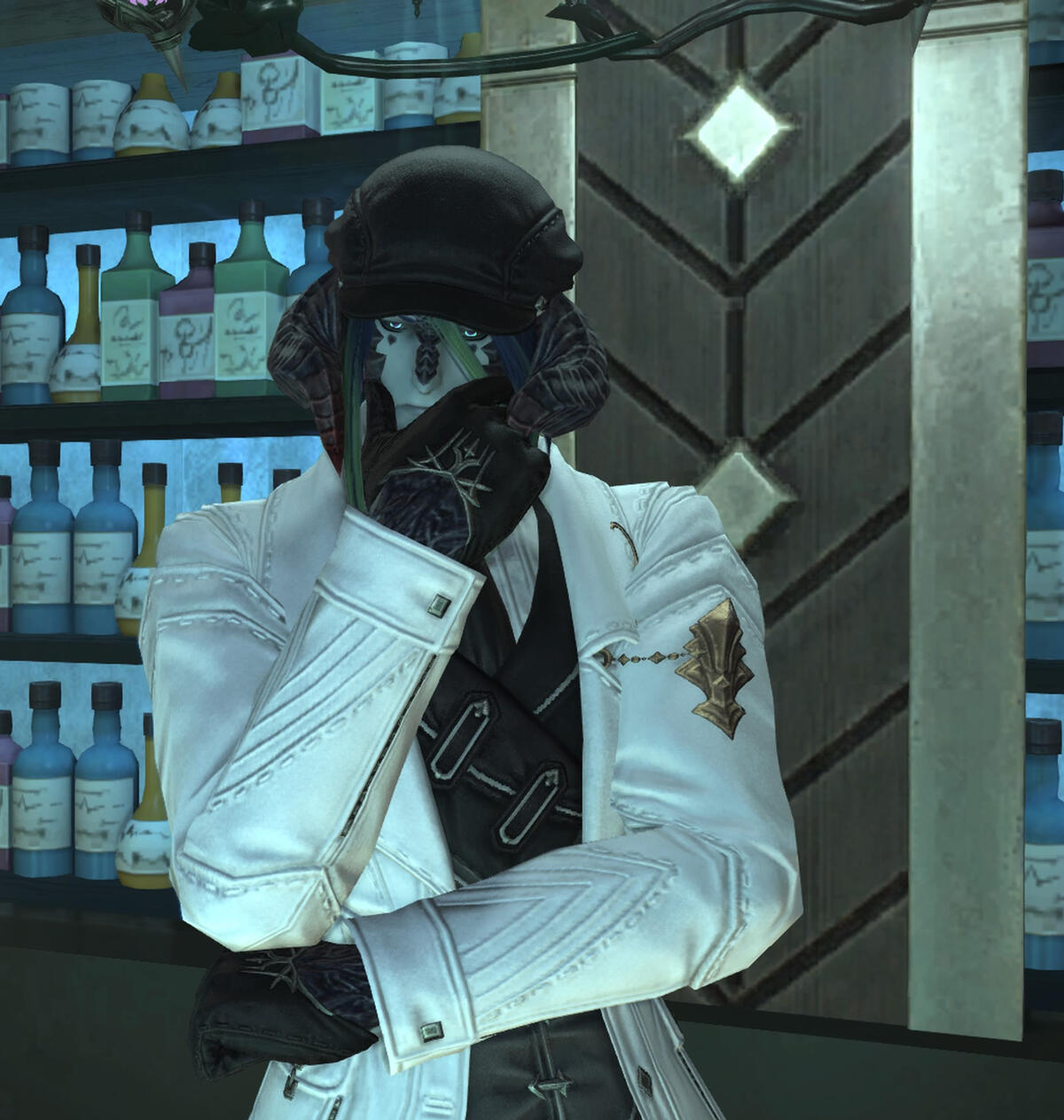 A native wanderer of the Azim Steppe from the Iriq, this lizzer was tracing the movements of others leaving the Steppe in order to learn about the world outside. On arrival to Kugane he set about acquiring information and keeping extensive notes. Upon discovering Atlantis he quickly understood that the best way to get information was to work the bar and engage in conversation with the people who frequent it. He listens with earnest and always tries to throw in an insightful comment.